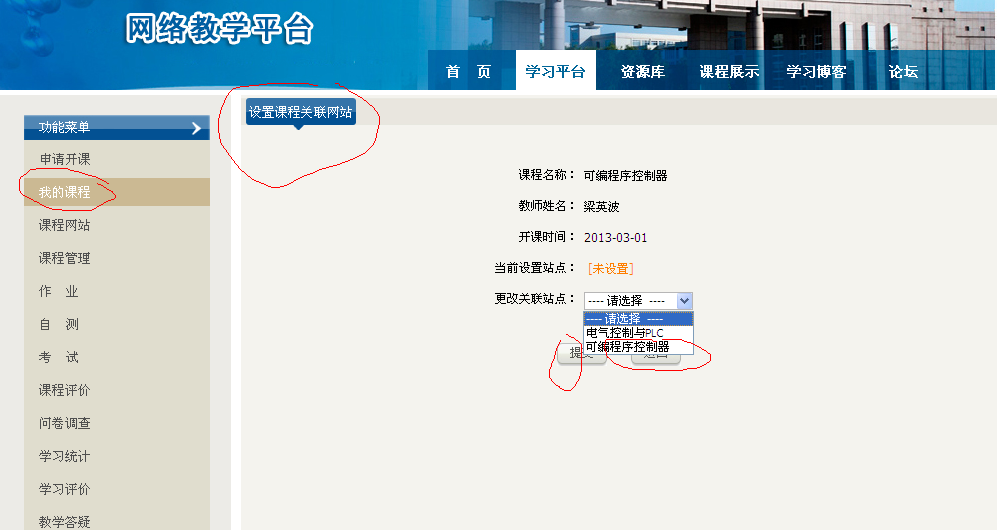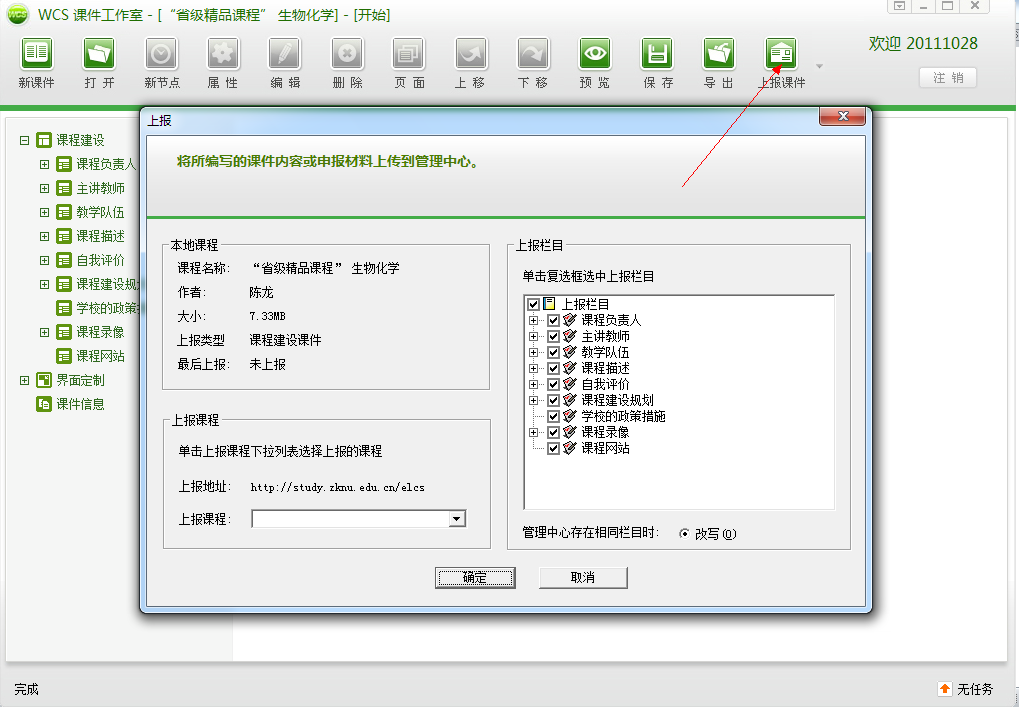 14、上报优秀课程资源,见下图: (1)打开建设好的课件