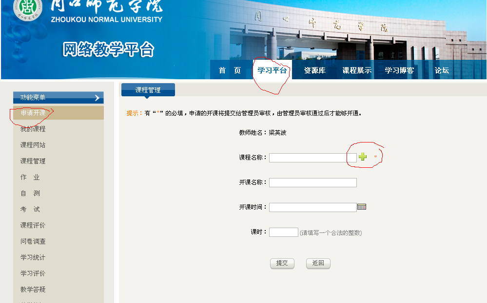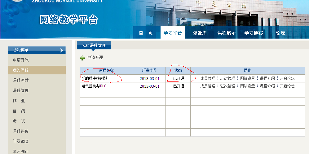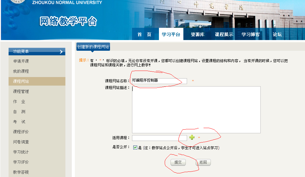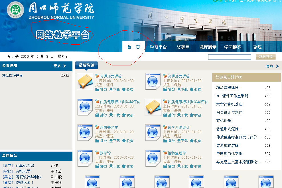 15、建设的优秀课程可以经我设置为共享后,课程信息会在学校网络教学平台资源库显示,使用一卡通账号登陆校园网方可浏览优秀课程网上资源。 16、欢迎加入周口师范学院网络建设群(QQ群:163405650),请下载查看建设优秀课程的有关资料。
