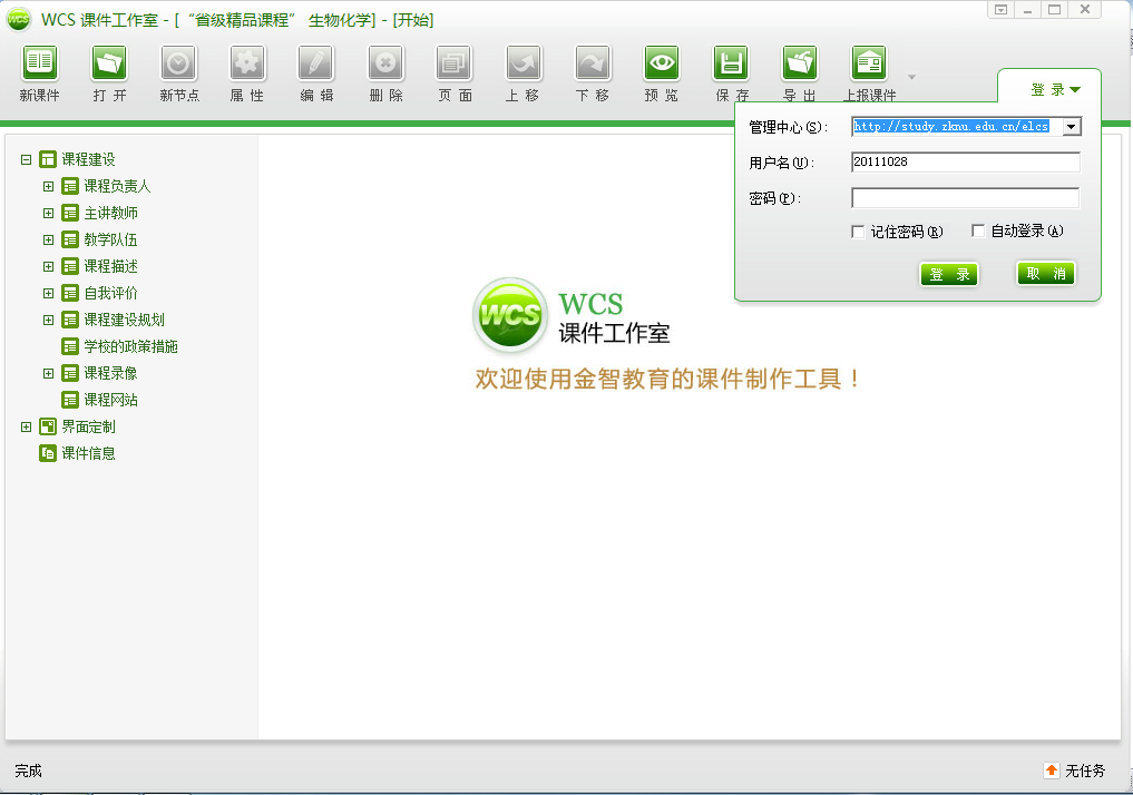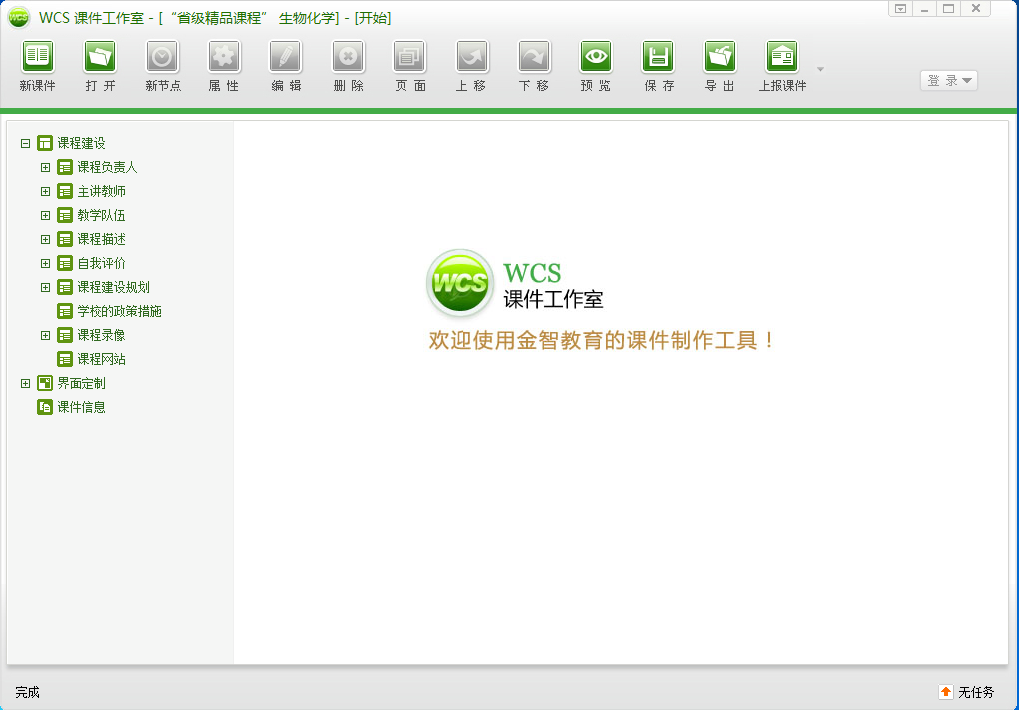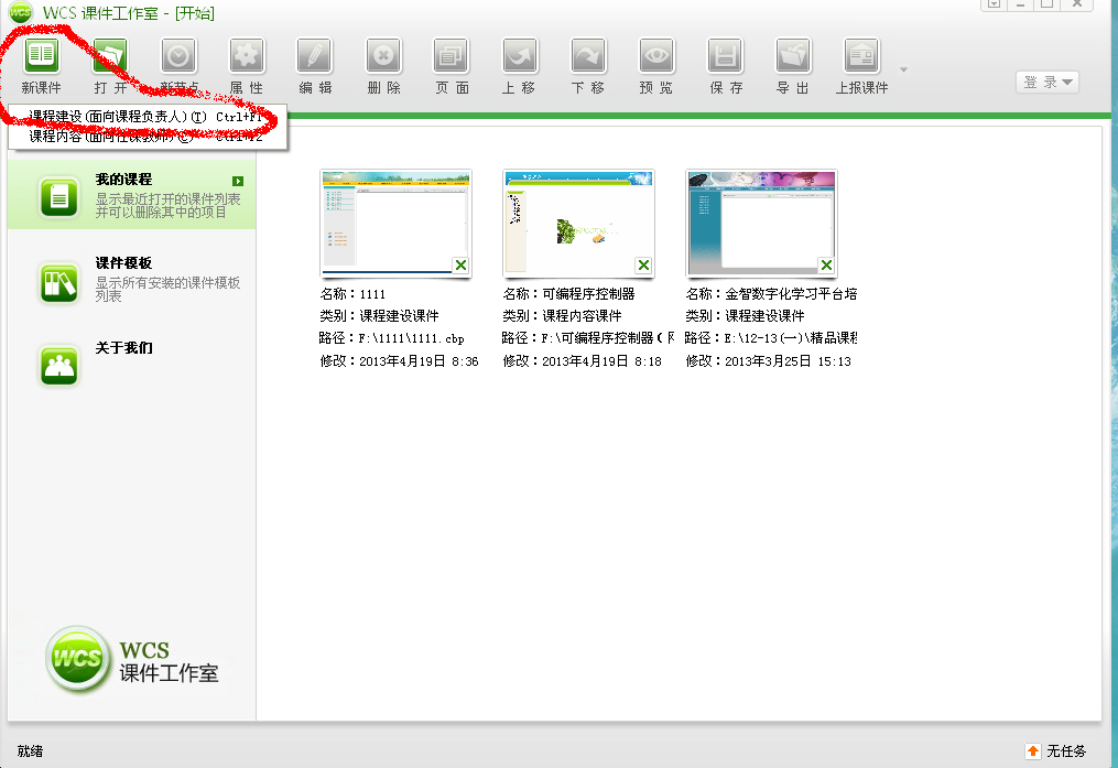 13、参考WCS软件使用手册,完成课件的制作,请选择“课程建设”来建立新课件。