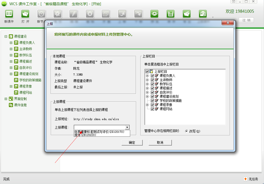 (5)如果有多门课程,选择相对应的课程名称上报即可,并点击“确定”